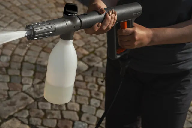 Experience the versatile Husqvarna PW 360 high-pressure washer and benefit from smart features to easily clean outdoor surfaces. With the new 3-in-1 Multi-Lance, you can quickly switch between different tasks, as it is possible to change nozzle with just one click. It has a long, flexible hose for extended reach and easy operation, and a new premium foam sprayer with improved foaming and fan adjustability. The reliable, high-performing induction motor and the metal pump minimises breaks and deliver premium performance.